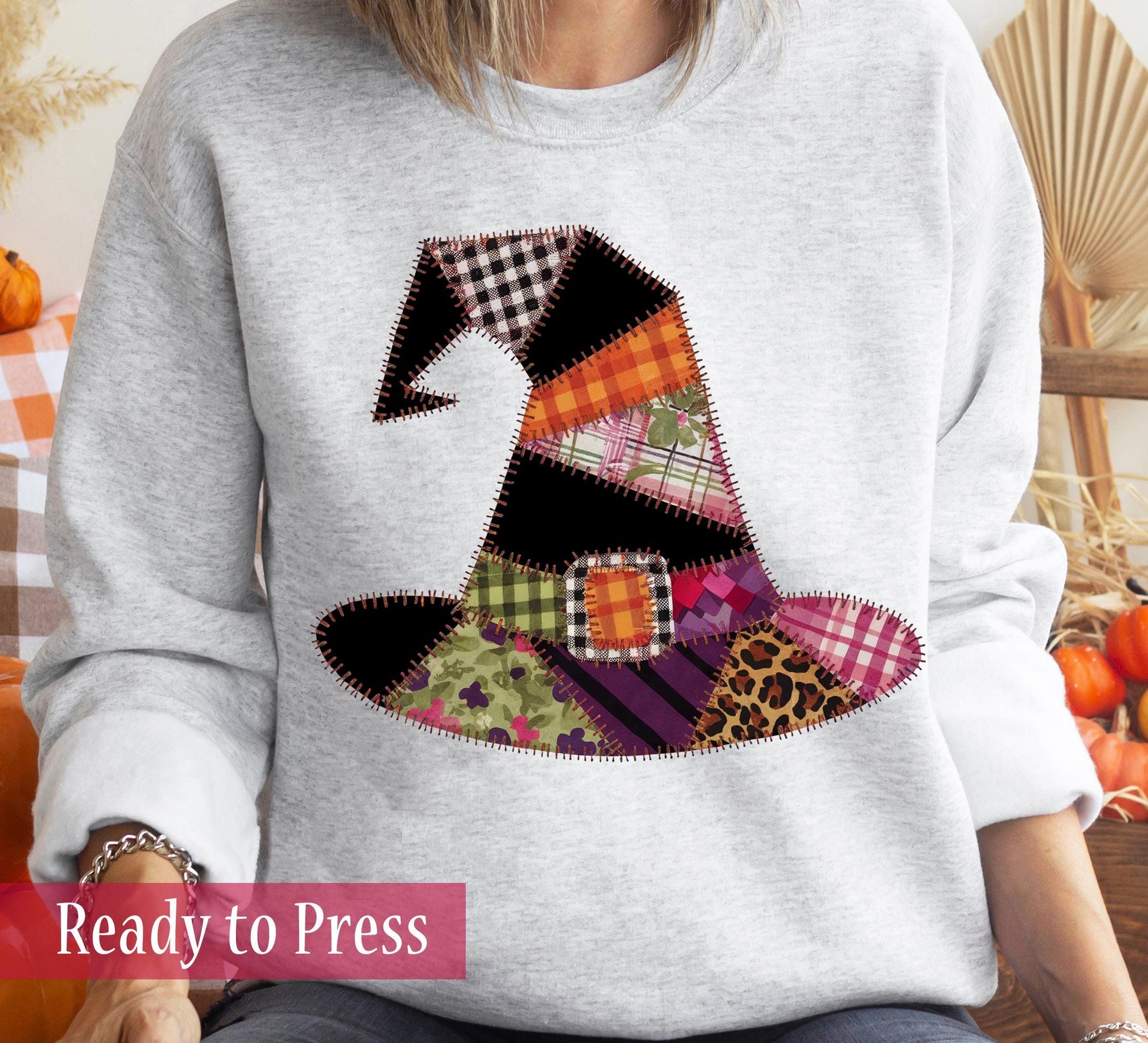 Faux Patchwork Halloween Witch Hat - Ready to Press DTF Transfers